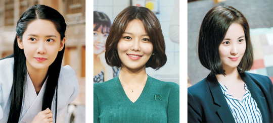 데뷔 10주년을 맞은 걸그룹 소녀시대에서 한솥밥을 먹던 멤버 윤아(왼쪽 사진), 수영(가운데), 서현(오른쪽)이 배우로서 각기 다른 드라마의 주인공을 맡아 홀로서기를 시도하고 있다. 어제의 동반자가 오늘의 경쟁자가 된 셈이다.