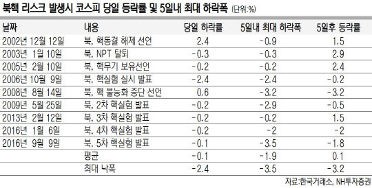 북한의 6차 핵실험 충격으로 국내 코스피와 주요 아시아 증시가 동반 하락세를 기록하고 있다. 핵실험 이후 처음 열린 4일 오전 코스피 시장은 초반에 20포인트 이상 떨어지며 2330대로 주저앉았다. 환율도 상승하는 등 다시 지정학적 리스크(위험)가 국내 금융시장을 엄습하고 있다.