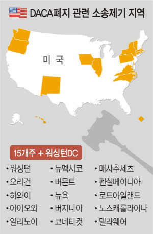 미국 내 15개 주와 수도인 워싱턴DC 법무당국이 도널드 트럼프 행정부의 ‘불법체류 청년 추방 유예 제도(DACA)’ 폐지 결정에 반발하며 소송을 제기하고 나섰다. 반면에 DACA 폐지가 청년 불법체류자의 대규모 추방이 아닌 이민법 개혁의 도화선이 될 수 있다며 DACA 폐지를 옹호하는 주장도 고개를 들면서 DACA를 둘러싸고 미국 사회가 양분되고 있다.