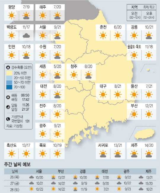 <날씨이야기>10월25일 수요일(음력 9월6일)