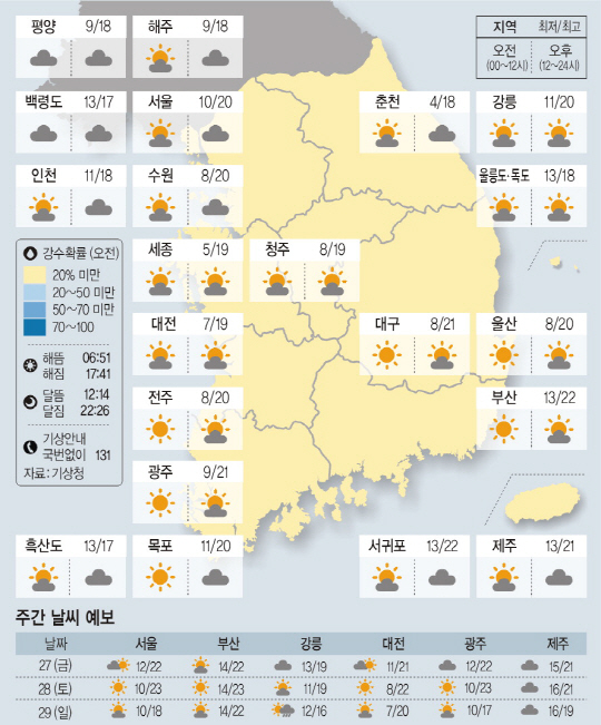 <날씨이야기>10월26일 목요일(음력 9월7일)