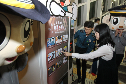 대구지방경찰청이 각종 치안정책을 소개하는 글과 기념품이 나오는 자판기를 25일 오전 동대구역, 도시철도역사 등에 설치해 시민들에게 홍보하고 있다.