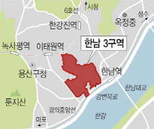 서울시는 제29차 건축위원회를 열어 용산구 한남동 686 일대 ‘한남3재정비촉진구역 주택재개발정비사업’의 건축계획안을 통과시켰다고 25일 밝혔다. 5개 구역 총 111만205㎡인 한남뉴타운 중 이번에 건축심의를 통과한 3구역은 38만5687㎡로 면적이 가장 넓다.