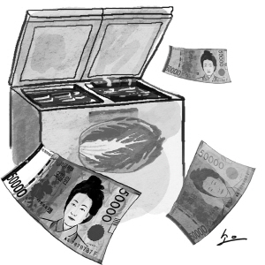 한데 ‘본좌’인 금고 자리를 넘보는 ‘복병’이 등장했단다. 바로 김치냉장고다. 강남구에 위치한 한 시중은행 지점장직을 맡고 있는 지인에 따르면 최근 2∼3년 새 금고 대신 김치냉장고를 애용하는 강남 현금 부자가 부쩍 많아졌다. 지폐 뭉치를 오래 묻어둬도 습기가 잘 차지 않기 때문에 십상이라는 게 그의 전언이다. 한때는 김장철이 아닌데도 강남권에 있는 한 유명 회사 대리점 김치냉장고가 동이 나 업계에서 화제가 되기도 했다는 얘기도 들려줬다.