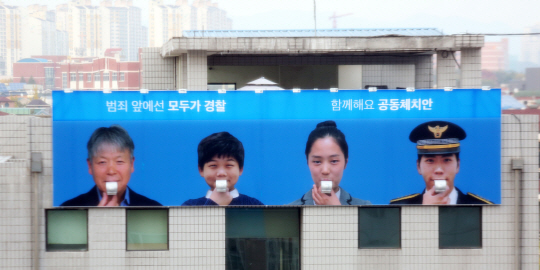 경기북부지방경찰청은 공동체치안 정책의 하나로 고양시 일산동부경찰서 외벽에 주민과 경찰이 함께 호루라기를 부는 모습을 담은 조형물(13m×6m·사진)을 설치했다고 27일 밝혔다.