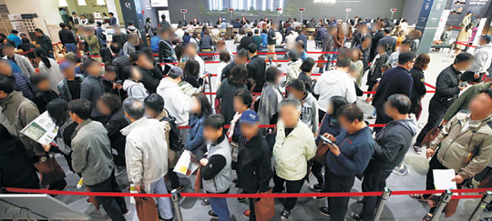 정부의 가계부채 대책 발표와 11월 금리 인상 가능성에도 불구하고 29일 서울 강동구 상일동 고덕 아르테온 본보기집 앞이 입장을 기다리는 수요자들로 북새통을 이루고 있다.