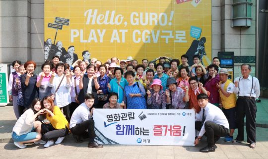 애경산업은 2012년부터 지역사회 복지관을 통해 본사 팀별로 소외계층 노인가정과 1대1 결연을 맺고 해당 가정을 후원하는 밀착형 봉사활동 ‘희망디딤돌’을 6년째 이어오고 있다. 지난 6월 15일 애경 직원들은 늦은 오후에 AK플라자 구로점 소재 CGV에서 독거 어르신들과 영화를 같이 보는 행사를 했다. 이 영화관람은 애경산업과 서울 구로구 소재 화원종합사회복지관이 공동으로 마련한 행사다. 애경산업 임직원이 참여해 독거 어르신 50여 명과 함께 영화를 관람하는 등 문화생활을 즐기고 소통하는 따뜻한 시간을 가진 것. 영화관람 후에는 여름철 필수품인 양산과 우산 등을 선물로 전달했다.