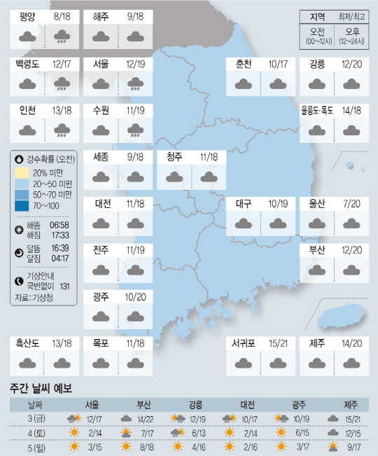 [날씨이야기] 3월6일 금요일(음력 1월18일)