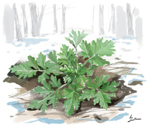 한겨울 산에서 소나무 밑 쑥 캐내