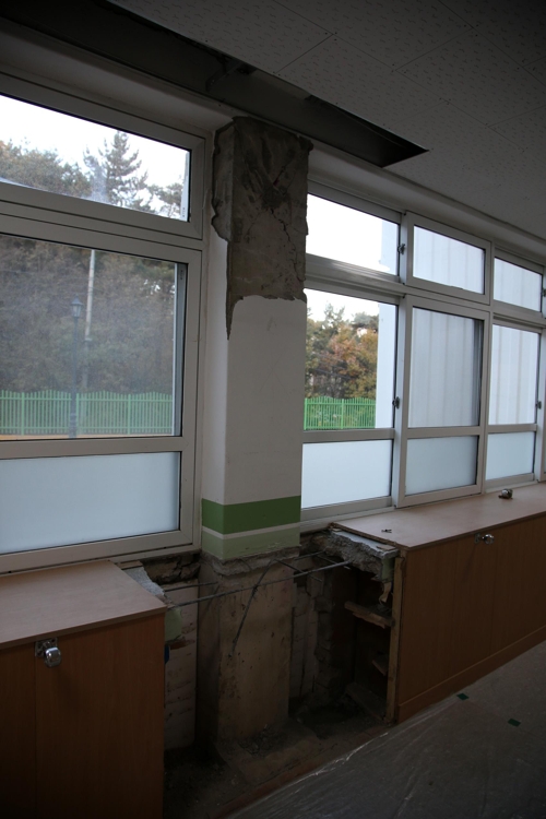 이 때문에 학교 측은 현재 금이 간 곳을 보수하고 기둥을 긴급 보강하고 있다. 또 한 달간 정밀진단을 벌이기로 했다.