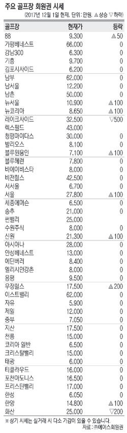 초고가권 중 비전힐스와 이스트밸리가 매수주문이 유입되면서 강세를 보이고 있고 무기명회원권 품귀현상에 더스타휴의 반응도 양호하다. 고가권 중 화산이 소폭 하락했지만 서울과 서원밸리는 강보합세로 대비되고 있다. 중가권은 거래가 부진했던 그린힐, 뉴코리아 등으로 순환매매가 진행되며 상승 중이고 남서울은 아예 매물 확인이 되지 않고 있다. 저가권 역시 급매물이 감소하면서 인천국제와 한원의 상승세가 뚜렷해졌다.