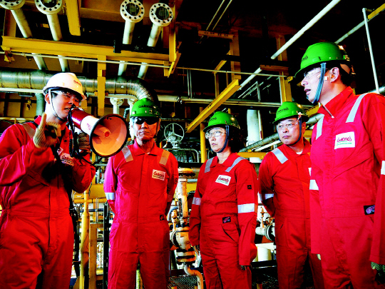 SK이노베이션 이사진은 이사회 후 SK이노베이션 E&P(자원채굴 및 생산) 사업의 대표 성공 사례인 베트남 남동부 해상 약 50㎞에 있는‘15-1광구’도 찾았다.(사진) 해당 광구는 현재 SK이노베이션이 베트남에서 사업 참여 중인 3개 광구 중 하나로 760㎢ 면적(서울의 1.3배)에서 일 평균 6만8500BOE의 원유와 가스를 생산하고 있다. 현장을 찾은 SK이노베이션 김 사외이사는 “성공 확률이 낮은 석유개발사업에서 성공 역사를 만들고 있는 현장을 보니 E&P 사업에 대한 자부심이 생긴다”고 말했다.