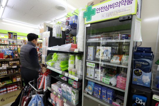 편의점 의약품 확대 판매를 두고 논란이 일고 있는 가운데 4일 서울 종로구의 한 편의점에 안전 상비의약품이 진열돼 있다. 이날 서울시약사회는 서울 서초구 효령로 건강보험심사평가원 서울사무소 앞에서 기자회견을 열고 “정부가 편의점 판매 의약품을 늘리는 대신 공공 심야 약국을 도입해야 한다”고 주장했다.