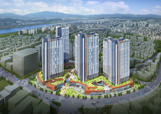 재래시장과 집창촌 등이 있는 서울 강동구 천호동의 낙후지역에 40층짜리 주상복합(조감도)이 들어선다. 서울주택도시공사(SH공사)는 천호1 도시환경정비사업조합, 중흥토건과 지난 6일 시공자 계약을 체결했다고 8일 밝혔다. 공사 계약금액은 3664억 원(연면적 기준 3.3㎡당 485만 원)이며 공사 기간은 착공 신고일로부터 45개월이다. 이번 계약에 따라 1970년대부터 형성된 천호시장과 동서울시장 등 노후 재래시장과 시장 주변에 생겨난 집창촌 자리가 40층 규모의 4개 주상복합건물이 들어서는 복합단지로 탈바꿈하게 된다. 부지 3만8508㎡에 지하 5층 지상 40층 규모 주상복합 빌딩 4개 동이 세워진다. 지하층과 저층에는 판매시설이 배치되고 아파트 3개 동과 오피스텔 겸 업무시설이 1개 동 건축된다. 가구 수는 분양 882가구, 임대 117가구, 오피스텔 264가구 등 총 1263가구다. 주상복합은 관리처분인가 등 행정 절차를 거쳐 2019년 착공하고, 2023년 완공될 예정이다.