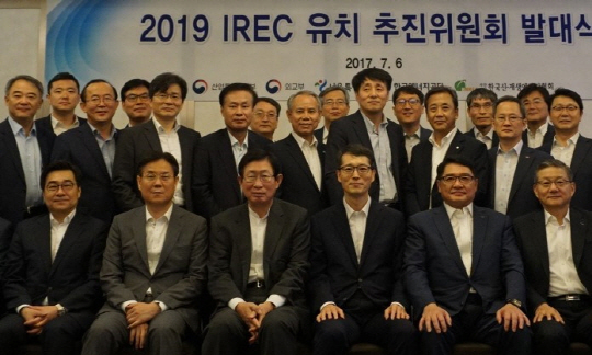 한국에너지공단(이사장 강남훈)과 한국신재생에너지협회(회장 윤동준)는 8일 서울 그랜드 인터컨티넨탈 서울 파르나스 호텔에서 ‘IREC SEOUL 2019 추진위원회 발대식’을 가졌다. 사진은 추진위원들이 기념촬영을 하는 모습.