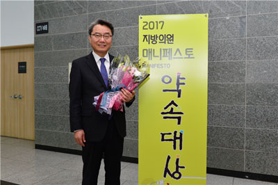 시의원으로 처음 당선된 2010년부터 8년 연속 약속 대상을 받은 것이다. 김 위원장은 시의회 운영을 책임지는 운영위원장으로 활동하면서 광진구 재정 여건 개선과 지역경제 활성화, 일자리 창출, 복지망 구축, 육아·보육 지원 강화, 공공시설·노후 학교시설 개선, 자양유수지 내 문화복합시설 건립 등 공약을 충실히 이행한 점을 높이 평가받았다. 김 위원장은 전국 시·도의회 운영위원장협의회 공동회장을 역임하면서 문재인 정부의 국정 목표인 자치분권 제도적 기반 마련과 지방의회 자율성·책임성 강화에도 기여했다는 호평도 받고 있다. 김 위원장은 “선거 공약을 이행하는 것은 지방 의원의 기본적인 책임”이라며 “광진구민과 서울시민의 복리 증진을 위해 노력했던 점을 평가받아 감사하게 생각한다”고 밝혔다.