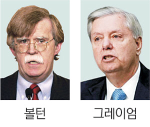 이는 최근 볼턴 전 대사가 중앙정보국(CIA)이 트럼프 대통령에게 북한 대륙간탄도미사일(ICBM) 개발 저지를 위한 기회의 창은 3개월이라고 보고했다고 밝힌 것과도 상통한다. 볼턴 전 대사는 지난해 대선에서 트럼프 대통령의 외교안보 자문역으로 활동했으며, 지난 7일 백악관에서 트럼프 대통령과 면담한 대표적 대북 매파 인사다. 앞서 지난 10일 트럼프 대통령과 골프 회동을 한 린지 그레이엄(공화·사우스캐롤라이나) 상원의원도 지난 13일 잡지 애틀랜틱과의 인터뷰에서 “트럼프 행정부가 대북 군사적 행동을 할 가능성은 30%이며, 북한이 7차 핵실험을 감행한다면 확률이 70%라고 말할 수 있다”고 밝힌 바 있다.