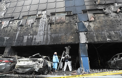 감식팀은 이날 오전과 오후로 나눠 불에 탄 건물 주차장 내 차량과 발화물 흔적 찾기에 주력할 계획이다.