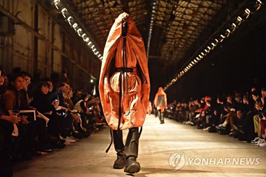 11일(현지시간) 이탈리아 피렌체에서 열린 ‘제93회 피티 이마지네 우오모’ 패션쇼에서 모델이 일본 디자이너 미야시타 다카히로의 의상을 선보이고 있다. 피티 이마지네 우오모는 세계적인 남성복 박람회로 이번 행사는 9일부터 12일까지 열린다.