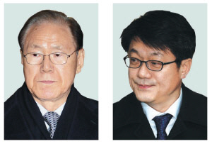 이명박 전 대통령의 최측근인 김백준(왼쪽 사진) 전 청와대 총무기획관이 국가정보원으로부터 수억 원대 불법 자금을 받은 혐의로 구속됐다. 이명박 정부 때 민정2비서관을 지낸 김진모(오른쪽) 전 서울남부지검장도 같은 혐의로 함께 구속됐다. 검찰은 이 전 대통령이 국정원 특수활동비 수수 사실을 알고 있었던 정황을 포착한 것으로 알려졌다. 검찰 수사가 예상보다 빠르고 강도 높게 이 전 대통령을 향하고 있는 데 대해 이 전 대통령 측은 이날 “정치보복”이라며 강하게 반발했다.
