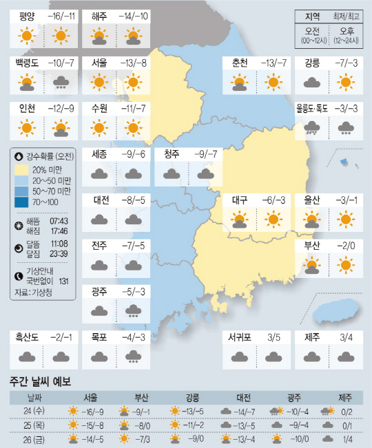 <날씨이야기>1월23일 화요일(음력 12월7일)