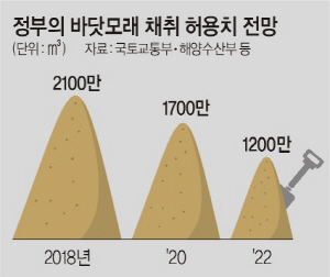 건설업계에서는 바닷모래 채취가 대폭 줄면서 모래 부족 현상이 당분간 지속할 것으로 전망하고 있다. 정부가 바닷모래 채취 허가를 지속적으로 줄인다는 입장이기 때문이다. 정부는 지난해 말 바닷모래 채취를 2018년 2100만㎥, 2019년 2000만㎥, 2020년 1700만㎥, 2021년 1500만㎥, 2022년 1200만㎥로 줄인다고 밝힌 바 있다. 이에 따라 레미콘 수급 불안도 이어질 것으로 보인다.