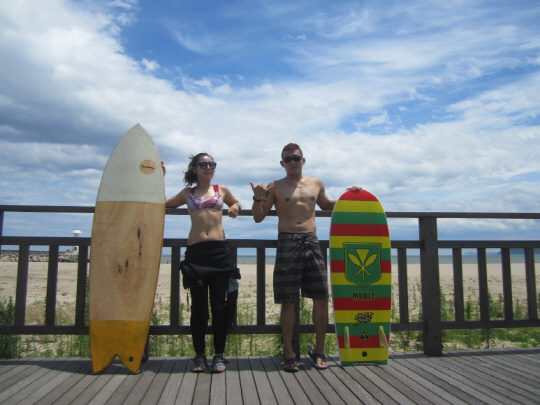 심 : 먹고살려고, 하하. 둘 다 회사를 나오고, 앞으로 어떻게 살지? 생각하며 동남아, 호주로 1년 정도 스쿠터 여행을 떠났어요. 그러다 나무 서프보드를 보게 됐고, ‘이거다!’ 싶어서 발리에 가서 기술을 배웠죠. 나무 보드는 제작하는 데 오래 걸리지만 친환경적이죠. 버려져도 자연을 해치지 않고, 남는 목재로 다양한 소품을 만들 수도 있고.