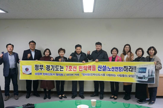 의정부 민락1·2지구와 고산지구 지역발전 모임인 의정부 민락신도시 협의회는 국토교통부와 경기도가 지난해 말 주민 의견을 무시하고 민락 노선을 제외한 채 지하철 7호선 기본계획을 고시했다며 정부와 경기도가 설계변경을 해서라도 탑석역 외에 인구밀집지역인 민락지구에 노선을 연장하거나 민락역을 신설해줄 것을 요구하는 성명서를 12일 발표했다.