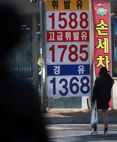 국제유가 하락으로 휘발유 가격이 30주 만에 소폭 하락한 25일 서울 한 주유소의 유가 가격표에 휘발유 1588원이 붙어 있다. 2월 셋째 주 주유소 휘발유 평균 판매가격(오피넷 기준)은 전주보다 0.2원 하락한 리터당 1565.4원을 기록했다.