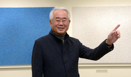 그림에도 ‘명품’이 있을까. 서울 강남구 신사동의 에르메스 매장 등이 있는 도산공원 일대는 명품거리다. 그런데 요즘 그 거리를 걷 다보면 이채로운 장면과 마주친다. 건물 1층에 쇼윈도가 있는데 전시된 것이 의상이나 핸드백 등이 아니라 그림이다. 그나마도 단색조 추상화다. 세계적인 프랑스의 아트북 출판사 ‘애슐린(ASSOULINE)’은 한국에서의 첫 전시로 김태호(70·사진) 화백의 작품을 선택했다. 독일의 타셴(TASCHEN), 영국의 파이돈(PHAIDON)과 함께 세계 3대 아트북 출판사로 꼽히는 애슐린은 샤넬, 루이뷔통, 크리스찬 디올, 까르띠에, 베르사체 등 명품 브랜드들이 함께 작업하고 싶어 하는 곳이다.