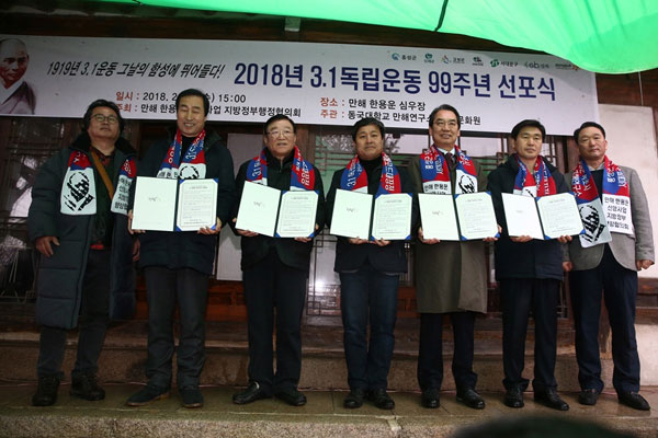 특히 이날 선포식은 ‘만해 한용운 선양사업 지방정부 행정협의회’의 ‘러시아 극동지역 항일 독립운동 유적지 탐방-만해로드 대장정’의 종착지로 만해 한용운 선사를 비롯해 조국의 독립을 위해 희생한 선조의 정신을 기릴 수 있는 더욱 뜻깊은 자리가 됐다. ‘만해로드 대장정’은 조국의 독립과 전 세계의 동향을 살피기 위해 연해주 지역을 방문했던 만해 선사의 발자취를 따르는 것으로 2월 25일부터 28일까지 3박 4일간 진행됐다. 항일독립유적지와 한인마을이 있는 블라디보스토크, 우수리스크, 크라스키노 지역 등을 탐방했으며 만해 한용운 선양사업 지방정부행정협의회 소속 서울 성북구, 서울 서대문구, 충남 홍성군 등 관계자가 참여했다. 탐방지는 성북문화원과 동국대 만해연구소의 연구 결과를 토대로 구성했다.