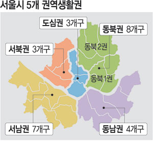 시는 서울 전역을 5개 권역 생활권으로 나누고, 각 권역을 116개 지역생활권(3∼5개 행정동 단위)으로 세분해 맞춤형 도시계획을 세웠다. 5개 권역은 동남권(잠실·강남 일대), 동북권(창동·상계·청량리·왕십리), 서남권(영등포·여의도·가산·마곡), 서북권(상암·수색), 도심권이다.