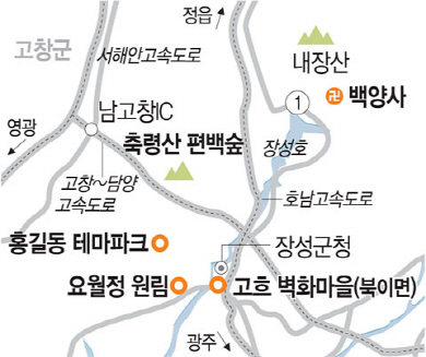 어디서 묵고 무엇을 맛볼까 = 장성을 둘러보려면 백양사 부근의 숙소나 광주의 숙소를 택하는 것이 낫겠다. 백양사 아래 백양관광호텔(061-392-2114)이 있다. 근래 객실을 손봤다. 장성과 거리가 가까운 광주송정역 인근에서 묵는 것도 추천한다. 야시장으로 이름난 1913송정역시장 부근의 마드리드비지니스호텔(062-941-0500)을 추천한다. 객실이 깨끗하게 관리되고 시설도 나무랄 데 없다. 인근에 아우라비즈니스호텔(062-942-0060)과 호텔 더 솔(062-941-3009)도 있다.