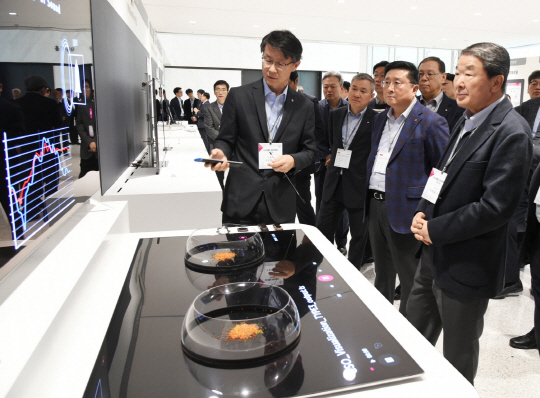 구본준(사진 오른쪽) LG 부회장은 28일 서울 강서구 마곡엠밸리 LG사이언스파크에서 열린 연구개발성과보고회에 참석, “연구·개발(R&D)은 사업 경쟁력 강화와 미래 준비의 원천”이라며 “어려울 때일수록 단기 성과에 연연해 R&D 인재 확보와 투자를 소홀히 해서는 안 된다”고 강조했다.