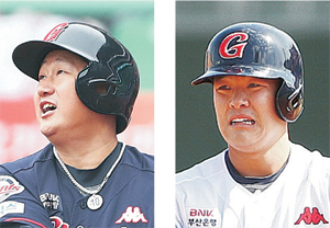 ‘230억 원 듀오’ 이대호(36·왼쪽 사진), 민병헌(31·오른쪽)이 침묵하면서 롯데의 창은 무디어졌다. 올 시즌을 앞두고 두산을 떠나 롯데에 합류한 민병헌은 4년간 80억 원을 받기로 했지만, 새 팀에서의 출발은 예상치를 크게 밑돈다. 롯데는 안타 생산력이 뛰어난 민병헌을 톱타자, 3번타자로 중용하고 있지만 0.238(21타수 5안타)에 그치고 있다. 거포 이대호 역시 0.238(21타수 5안타). 이대호와 민병헌이 날린 10안타 가운데 홈런은 없다. 이대호는 지난해 미국에서 돌아와 롯데와 4년간 150억 원에 계약했다. 이대호와 민병헌의 몸값을 모두 합치면 230억 원이지만, 시너지 효과는 아직 없다. 이대호와 민병헌은 타선의 핵이기에 살아나지 않으면 롯데의 침체는 장기화될 수도 있다.