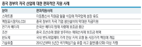 미국·유럽연합(EU) 등이 뒤늦게 중국 정부의 ‘시장 왜곡’ 관행에 반기를 들고 있는 가운데 “이미 한국 산업은 중국 정부의 ‘반칙’ 행위로 인해 속병이 깊어질 만큼 깊어진 상태”라는 우려의 목소리가 커지고 있다. 중국은 정부와 기업이 똘똘 뭉쳐 ‘한국 타도’를 외치는 데 반해, 국내 기업은 현 정부의 기업 패싱(Passing·배제) 행보와 정치·사회 분야의 반기업 정서에 되레 잔뜩 주눅 든 상황이다.