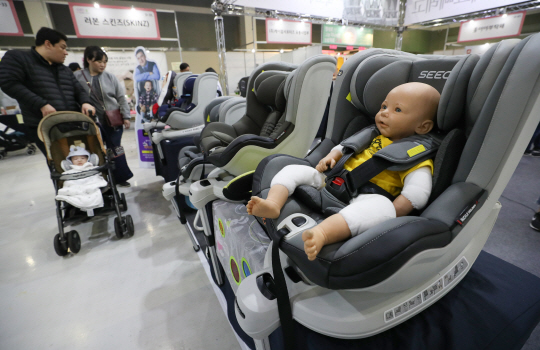 29일 서울 서초구 aT센터에서 열린 제 21회 ‘서울 베이비 키즈페어’에서 방문객들이 어린이용 카시트를 살펴보고 있다.