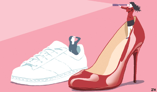 여자가 하이힐이나 단정한 구두를 신는 것은 주역의 괘상으로 뇌풍항(雷風恒)이라고 하는데 이는 용이 가볍게 하늘로 승천하는 모습인바 운명의 승리를 말한다. 모름지기 여자의 발은 하늘을 날듯한 가벼운 모습이어야 한다. 발이 무거우면 운명도 무거워지는 법이다. 남자라 하더라도 평생 운동화 차림으로 살아가겠다면 귀인의 꿈은 포기해야 한다. 면접을 보러 간다거나 여자를 만나거나 어른을 만나러 갈 때 그런 모습이라면 사람을 무시하는 불량한 인간으로 보일 것이다.