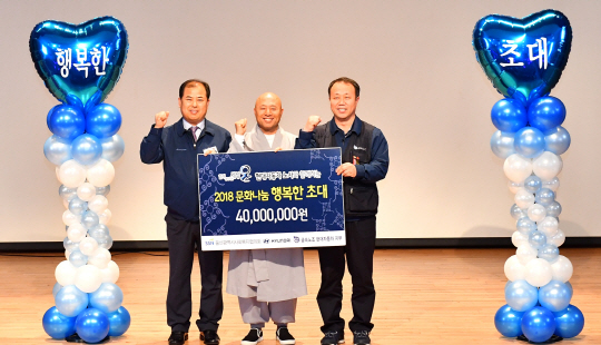 현대차 노사는 24일 울산대 소극장에서 사회공헌기금 4000만 원을 울산사회복지협의회에 전달(사진)하고 ‘2018 문화 나눔 행복한 초대’ 행사를 가졌다. 이날 행사에는 울산 지역 여성 300여 명이 초청받아 육아와 경력 단절에 대한 공감 토크쇼 ‘투맘쇼’를 관람하며 즐거운 시간을 보냈다. 노사는 이번 행사를 시작으로 내년 2월까지 모두 8회 이상 다양한 계층의 울산 시민을 대상으로 북 콘서트, 육아 토크쇼, 노후 설계 강좌, 영화 관람 등 문화예술 콘텐츠 관람 기회를 제공할 예정이다.