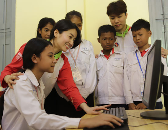 봉사단은 이들 학생을 위해 컴퓨터 교실(사진)도 만들어 줬다. 컴퓨터 교실 구성에 필요한 PC, 책상, 의자, 빔 프로젝트 등 비품 일체를 지원했다. 수도인 프놈펜 시내에서도 학습용 컴퓨터를 보유하고 있는 학교는 손에 꼽을 정도라고 아시아나항공은 설명했다. 아시아나항공은 캄보디아는 물론 중국, 베트남, 인도, 필리핀 등에서 현지 아동 청소년을 위한 교육지원 사업을 수년째 진행해오고 있다.