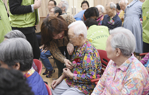몸 불편한 노인들 카네이션 달아줘