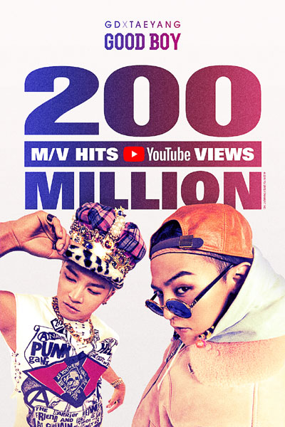 소속사 YG엔터테인먼트는 ‘굿보이’ 뮤직비디오가 18일 0시 유튜브 기준 2억뷰를 넘어선 것을 기념해 공식 블로그(www.yg-life.com)에 특별 축전 이미지를 게재했다.