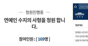지난 18일 청와대 홈페이지 국민청원 게시판에는 ‘연예인 수지의 사형을 청원합니다’라는 제목의 게시물이 올라왔다. 이 글을 올린 게시자는 “양예원 사건과 전혀 관계가 없는 사진 스튜디오가 수지의 섣부른 행동으로 여론몰이의 희생양이 되어 폐업 당할 위기에 처했다”라며 “수지를 사형이라는 엄벌에 처해 돼지들에게 사회 정의의 본을 보여줘야 한다고 생각한다”고 주장했다.