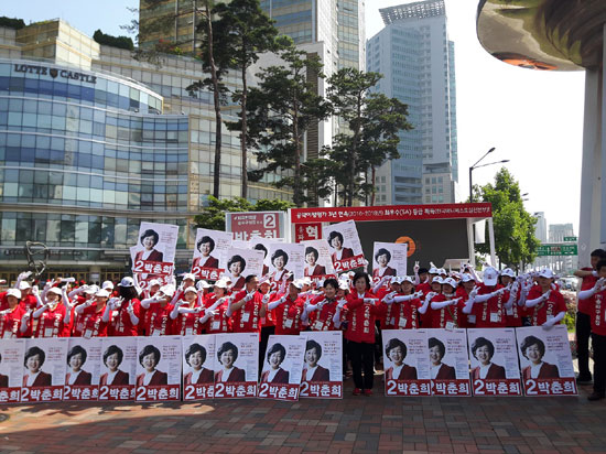 3선 송파구청장에 도전하는 자유한국당 박춘희 후보가 31일 송파구 잠실역 사거리에서 선거운동 출정식(사진)을 열었다.