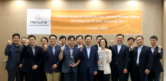 한화첨단소재는 11일 세종시 부강면 본사에서 2018 한화첨단소재 신진 교수상 시상식을 열었다고 12일 밝혔다.