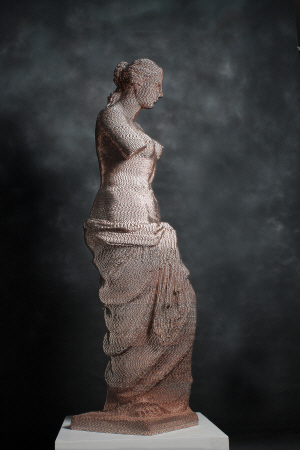‘조형아트서울’의 하이라이트로 꼽히는 대형 조각 특별전도 열린다. 야외에서나 볼 수 있던 대형 조형물을 실내에서 소개하는 자리다. 특별전에는 10원짜리 동전 수만 개를 쌓아 올린 김승우의 ‘밀로의 비너스’(사진)를 비롯해 김병규, 나인성, 노준진, 도태근, 류종윤, 박재성, 박현주, 송필, 양태근, 이시, 이원주, 조용익, 조정래, 최영관 작가의 대형 조각이 나온다. 올해는 갤러리 부스를 보강, 회화와 조각이 함께 어우러지도록 한 점이 특징이다. 구사마 야요이, 김창열, 김태호, 오세열, 이왈종 작가 등의 회화를 조각과 함께 감상한다. 신준원 ‘조형아트서울’ 대표는 “지난해 40여 개 갤러리가 참여했는데 올해 70여 개 갤러리가 참여할 정도로 갤러리들의 관심이 늘어나고 있다”며 “아트페어에 출품된 수준 높은 작품들이, 공개 입찰을 통한 ‘광장미술’로 전락한 조형 예술에 대한 관계자들의 인식을 바꾸고 격을 높이는 계기가 됐으면 좋겠다”는 바람을 피력했다.