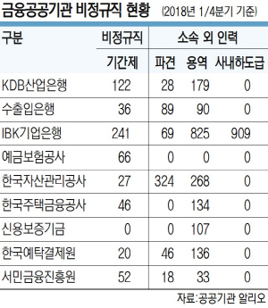 문재인 정부의 ‘공공부문 비정규직 제로화’ 방침에 따라 금융 공공기관들이 비정규직의 정규직 전환 작업을 진행하고 있지만, 강성노조의 반발과 어설픈 가이드라인(지침)으로 애를 먹고 있다. 특히 정부가 예산지원도 없이 정규직화를 압박하고 있어 신규채용 부담까지 안고 있는 금융 공공기관들의 시름이 깊어지고 있다.