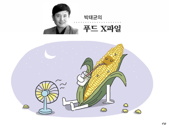 무더위·열대야가 이어지고 있다. 이맘때 찐 옥수수는 훌륭한 간식·야식거리다. 가능한 한 밭에서 따자마자 쪄 먹자. 옥수수는 수확 후 시간이 지날수록 당분이 전분으로 변해 단맛이 떨어지기 때문이다.
