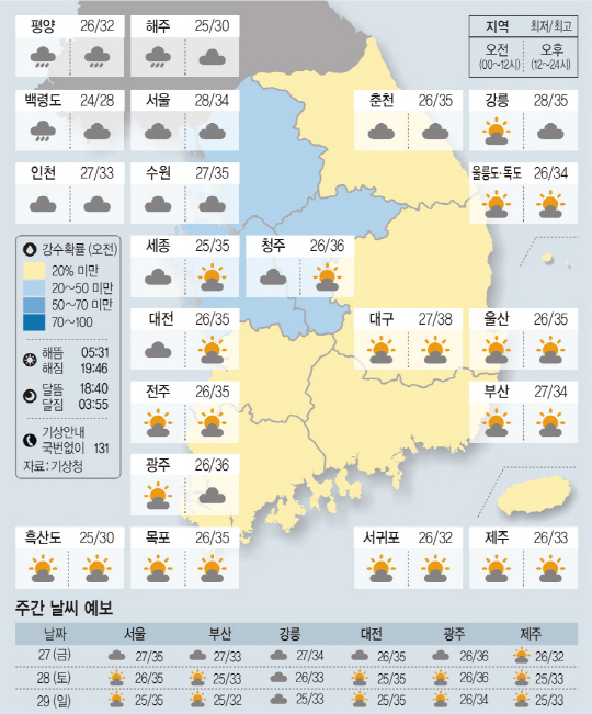 <날씨이야기>7월26일 목요일(음력 6월14일)