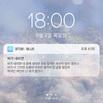 비투비 블루는 30일 0시 비투비의 공식 SNS를 통해 두 번째 디지털싱글 ‘비가 내리면’의 컴백 아트워크를 업데이트했다. 이 티저 이미지는 비가 내리는 휴대전화 배경화면 속에 컴백 일자와 함께 신곡 ‘비가 내리면’의 가사 일부가 담겨있다.